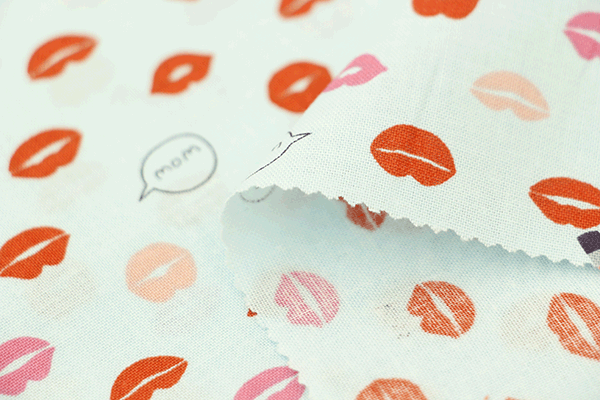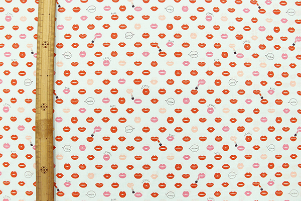 【在庫限り】☆シーチングプリント☆『プリティリップ』サックス生地 コットンシーチング生地/くちびる/かわいい/シーチング/布/タケヒロヤ