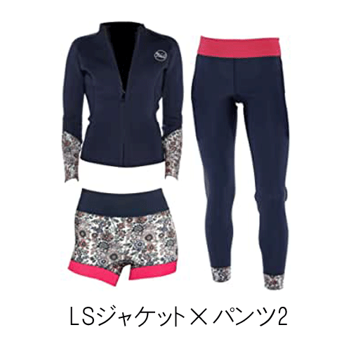 2カラー 【ブラック/クロシェット ダークネイビー/フローラル】 LSジャケット×パンツ2紫外線や冷えから身体を守りクラゲ対策にも最適。