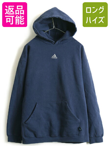 【8/20 24h限定 ポイントUP&最大半額!】 90's USA製 ■ ADIDAS アディダス ロゴ 刺繍 スウェット フード パーカー ( メンズ L ) 古着 スエット トレーナー ワンポイント 90年代 紺| 中古 アメリカ製 プルオーバー スウェットパーカー フードパーカー ロゴパーカー 裏起毛 ヘ