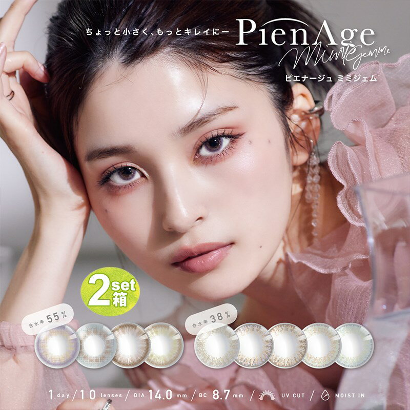 【2箱セット】カラコン ワンデー ピエナージュミミジェム 1箱10枚 1day UV モイスト カラーコンタクト 1日使い捨て 度あり 度なし ハーフ ナチュラル PienAge mimigemme 1day