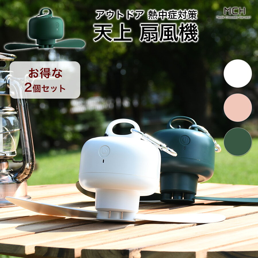 お得な2個セット キャンプ用 小型扇風機 小型ファン 吊り下げ 可愛い おしゃれ 携帯扇風機 USB充電式 ハンズフリー ひんやりグッズ 吊下げ MCH-A012