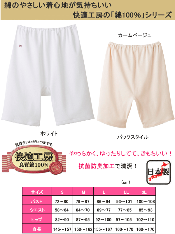 ロングセラーの快適工房 三分パンティ M L LL 腰ゴム取り替え可能 ★