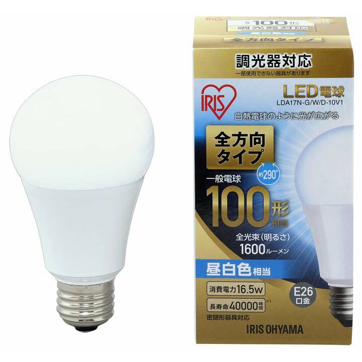 LED電球 E26 100W 調光器対応 電球色 昼白色 アイリスオーヤマ 全方向 LDA17N-G/W/D-10V1・LDA17L-G/W/D-10V1密閉形器具対応 電球のみ おしゃれ 電球 26口金 100W形相当 LED 照明 省エネ 節電 ペンダントライト デザイン照明 玄関 廊下 寝室 和室