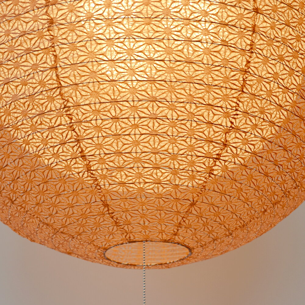▽麻葉煉瓦in春雨白 外側の提灯を麻葉模様の煉瓦色、内側の提灯は、雨を打ちつけたような柄の春雨紙を使用しています。
