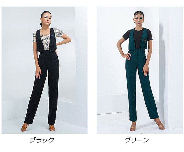 ダンスウェア ボトムス レディース ダンス ズボン パンツ オールインワン ラテン モダン チャチャチャ 社交ダンス 社交ダンス衣装 ダンス衣装 ボトムス 練習着 競技 美脚 S M L XL ブラック グリーン